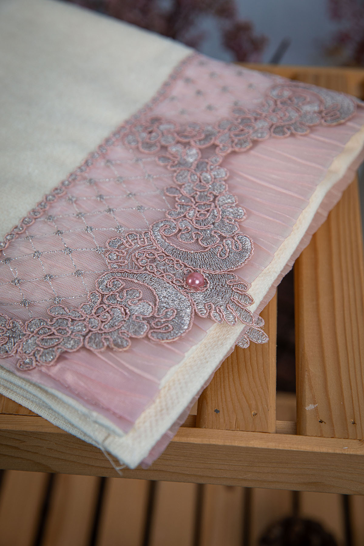 %100 Pamuk İnci Güpürlü Çeyizlik 4lü Havlu 50x90 - Pudra - Vizon