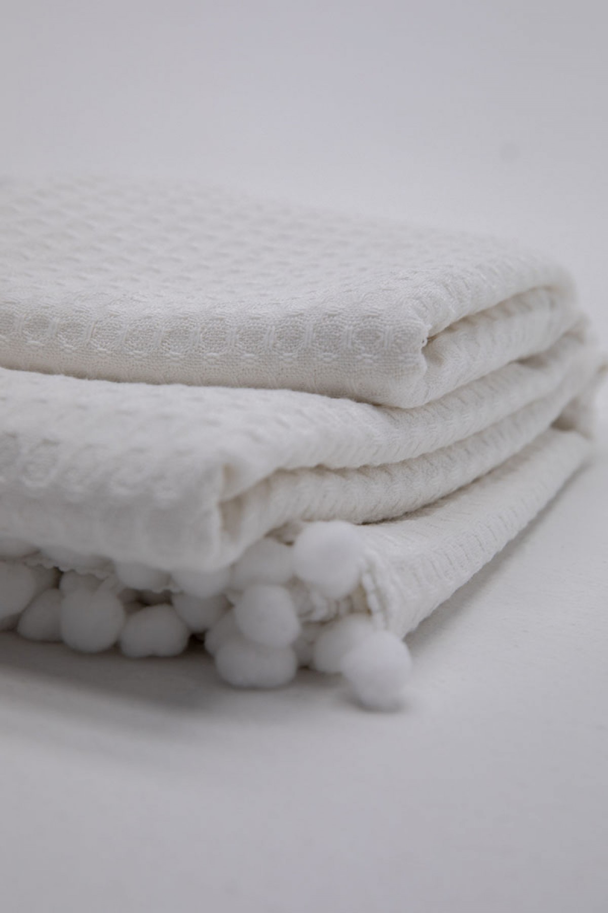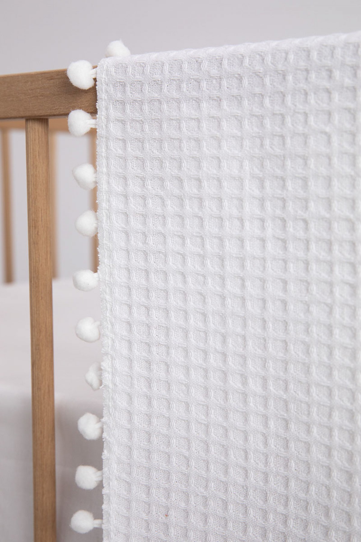 %100 Pamuk Macaron Bebek Battaniyesi - Beyaz