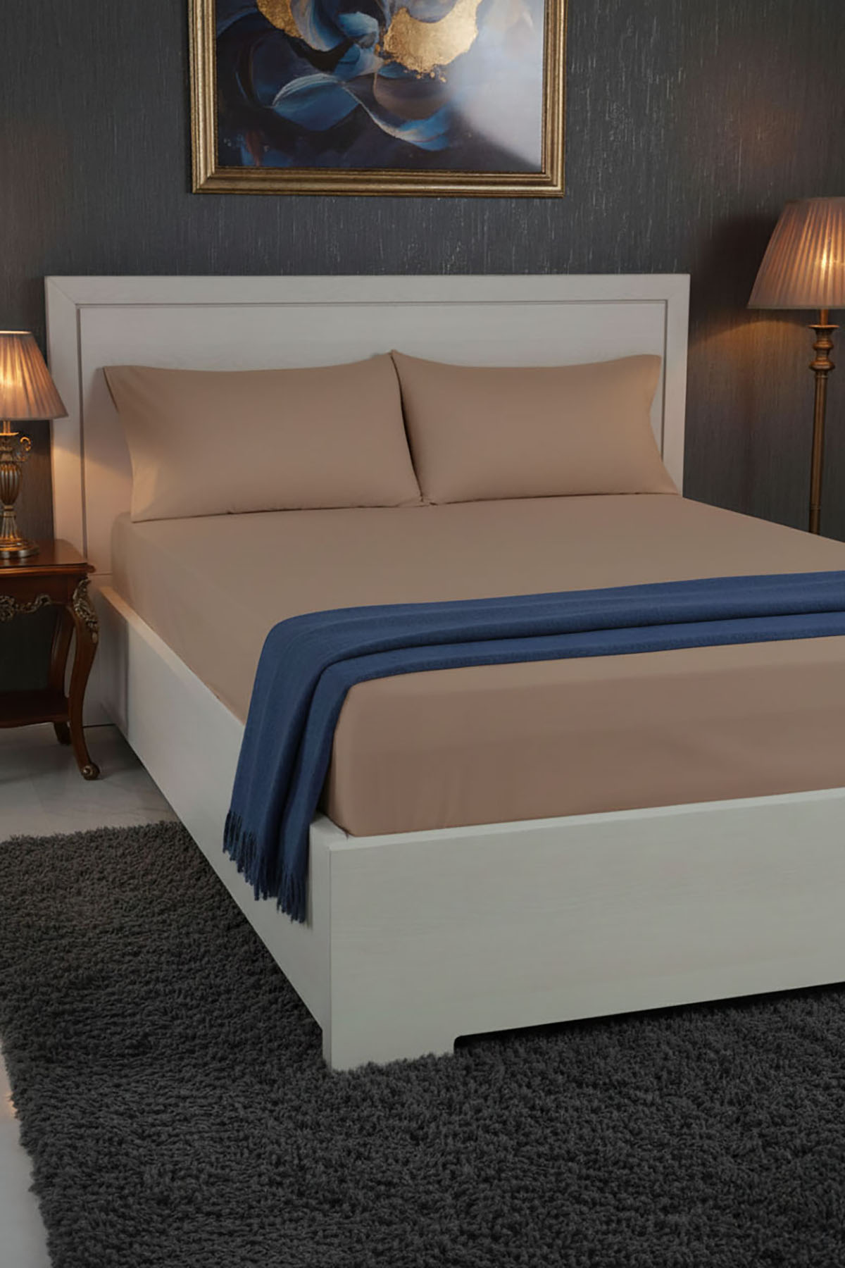 %100 Pamuk Ranforce Premium Çift Kişilik Lastikli Çarşaf Seti - Mocha