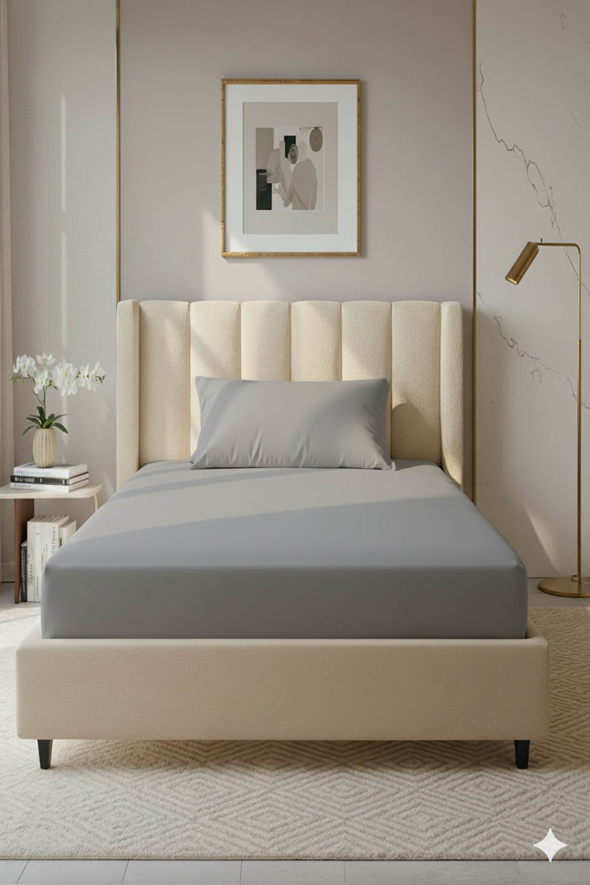 %100 Pamuk Ranforce Premium Tek Kişilik Lastikli Çarşaf Seti - Koyu Gri