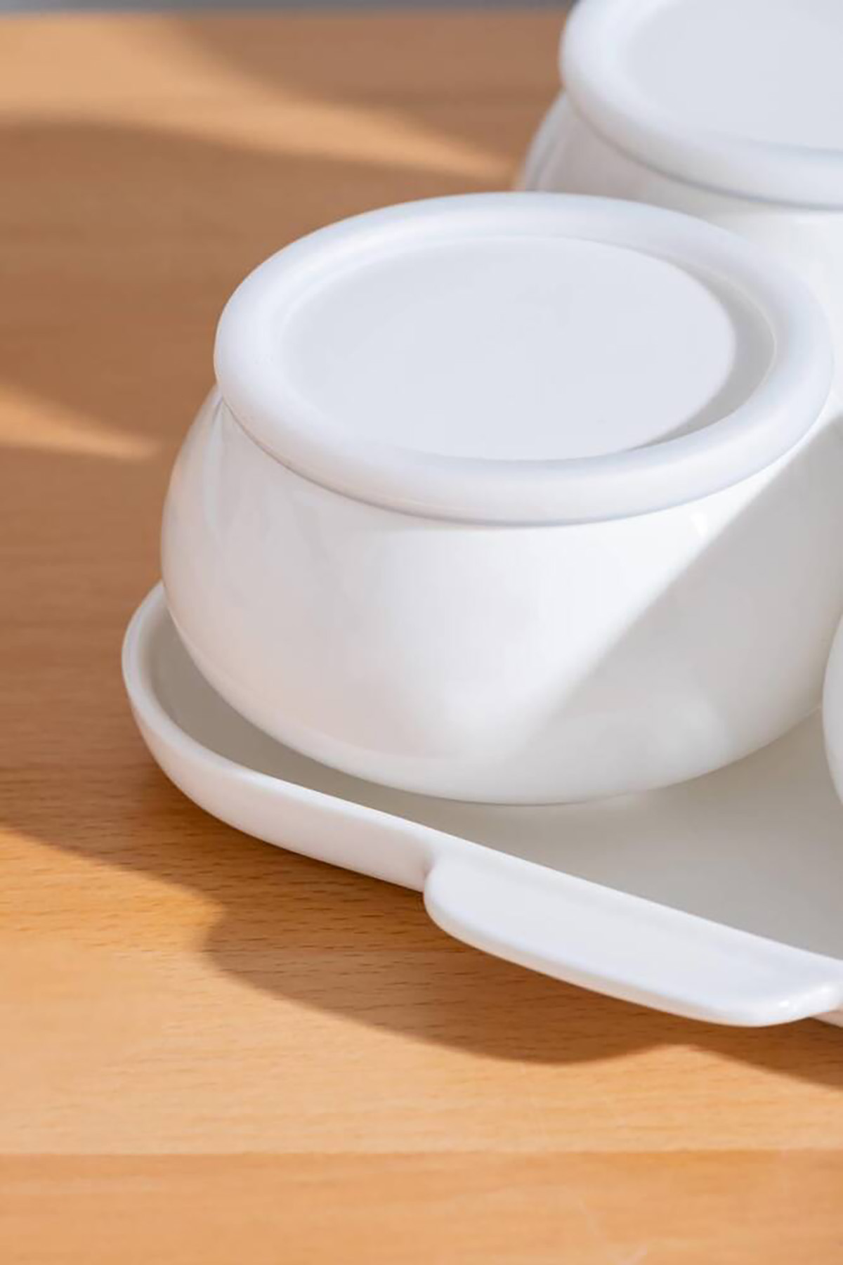 6 Adet Yuvarlak Porselen Kapaklı Kahvaltılık
