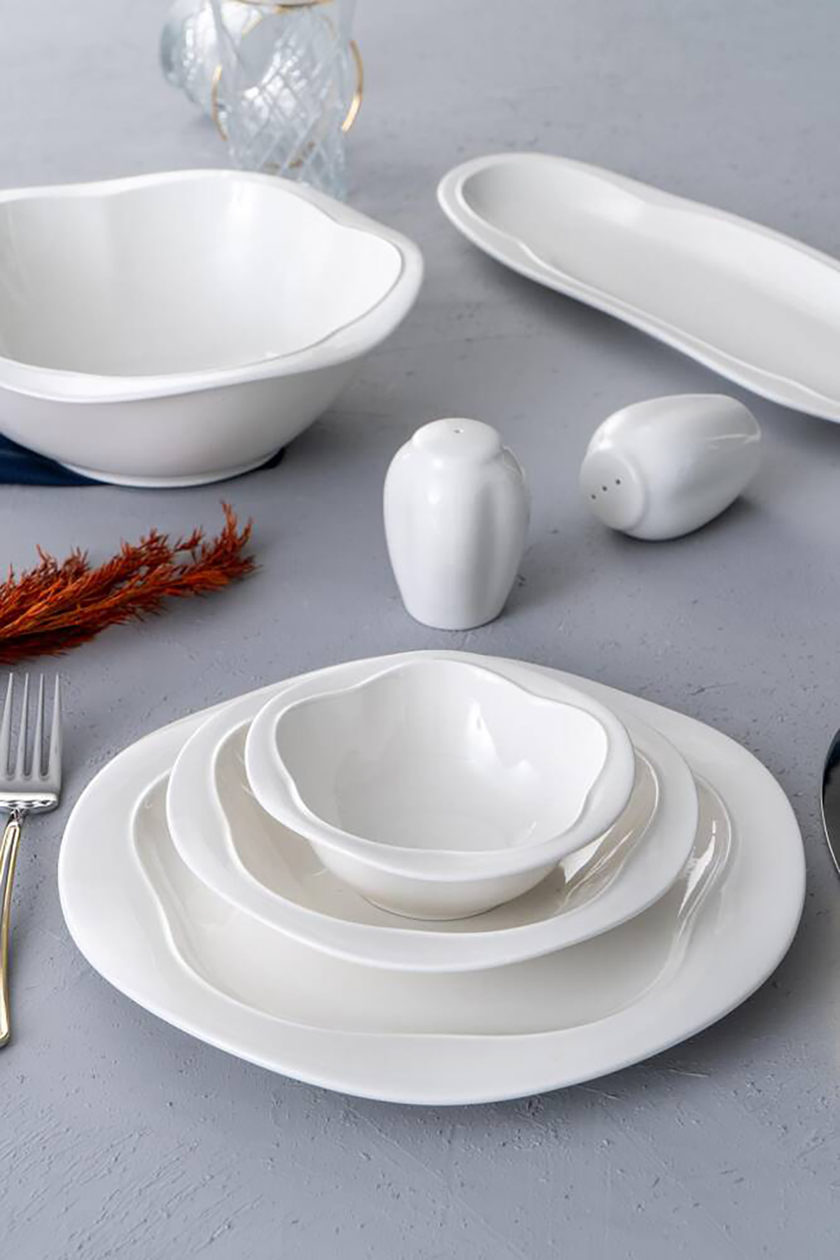 6 adet servis tabak 6 adet yemek tabak 6 adet çorba kase 1 adet bol kase 1 adet kayık tabak 2 adet tuzluk/biberlik