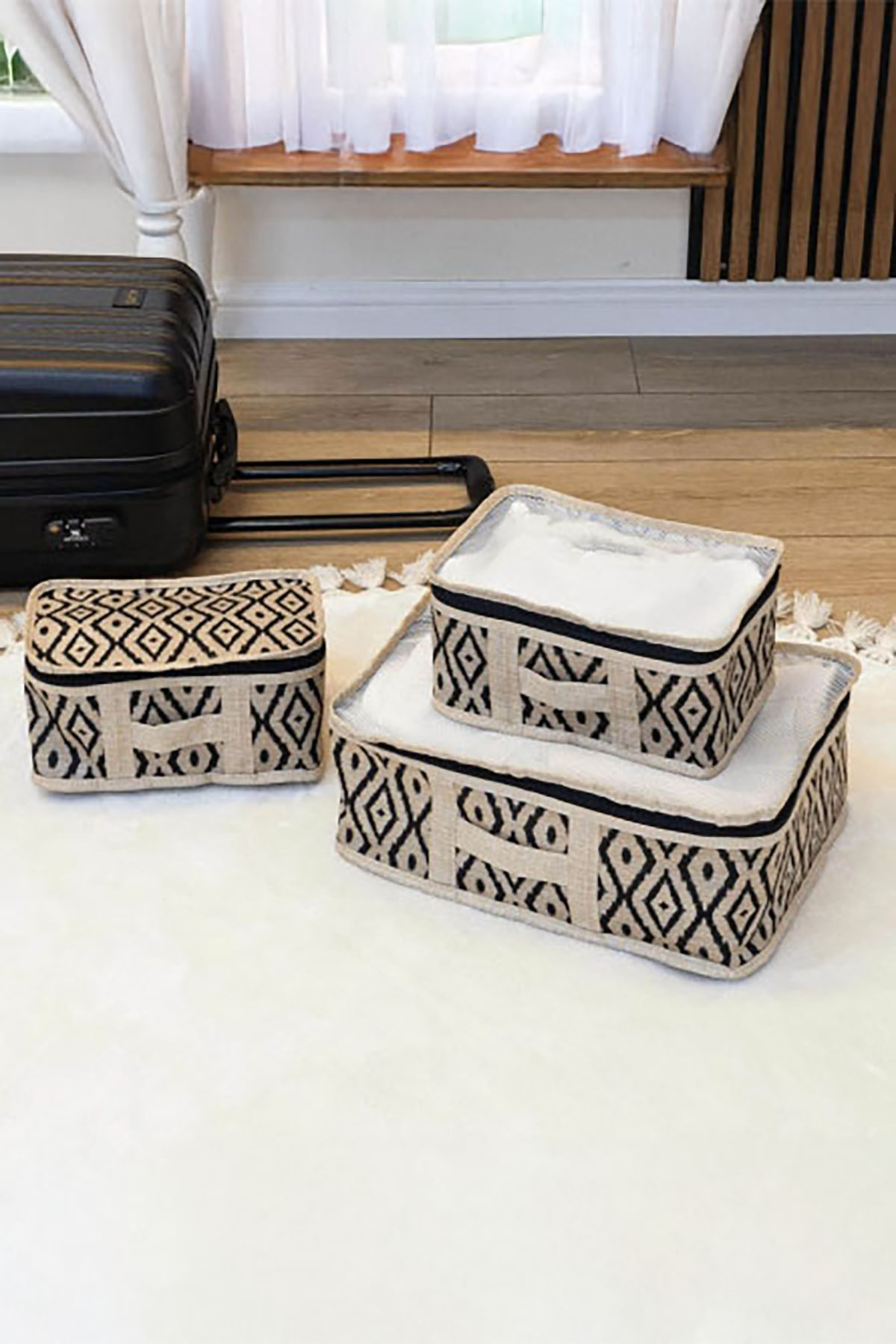 Seyahatlerinizde bavulunuzda düzeni sağlamak için özel olarak tasarlanmış Alas Bohe 3’lü Bavul İçi Seyahat Çantası, farklı boyutlardaki üç çantasıyla eşyalarınızı kolayca organize etmenizi sağlar. Kıyafetlerden kozmetiğe, küçük aksesuar ve kişisel eşyalarınıza kadar her şeyi ayrı ayrı saklayabilir, bavulunuzda karışıklığa son verebilirsiniz.