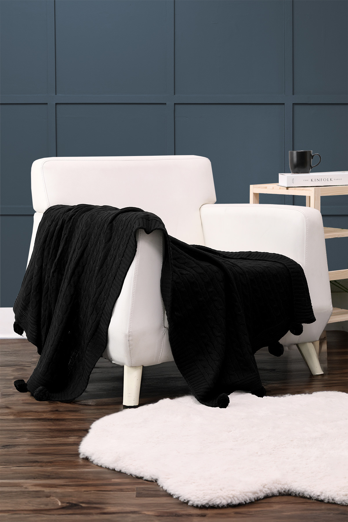 Biocotton Triko Ponponlu Tv Battaniyesi - Siyah