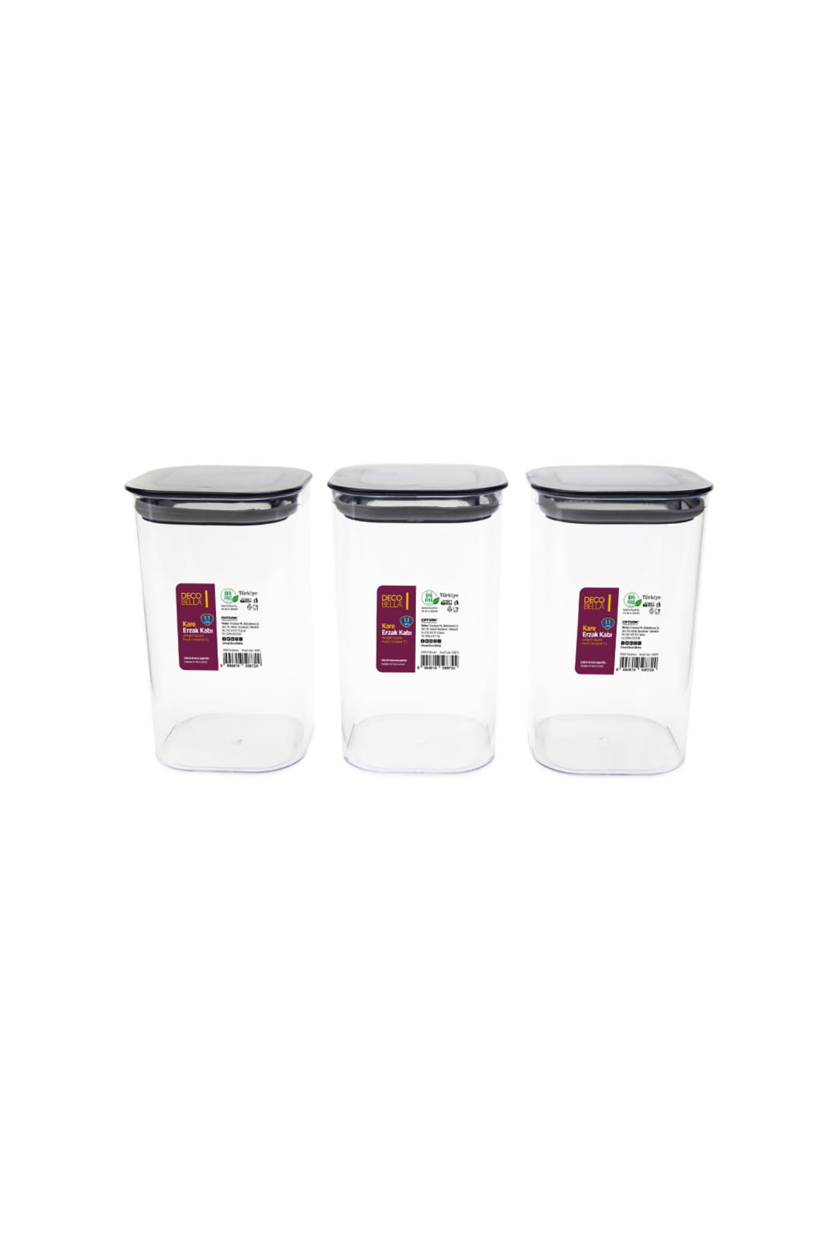 Mutfakta düzeni ve işlevselliği ön planda tutanlar için tasarlanan DecoBella 3'lü kare erzak kabı seti, her biri 1.1 litrelik kapasitesiyle günlük kullanım için ideal bir depolama çözümü sunar. Şeffaf tasarımı sayesinde içerisindeki ürünleri kolayca görebilir, ihtiyacınız olan malzemelere hızlıca ulaşabilirsiniz. Kompakt ölçüleriyle raflarda ve dolaplarda yer tasarrufu sağlar, mutfak düzenini korumanıza yardımcı olur.