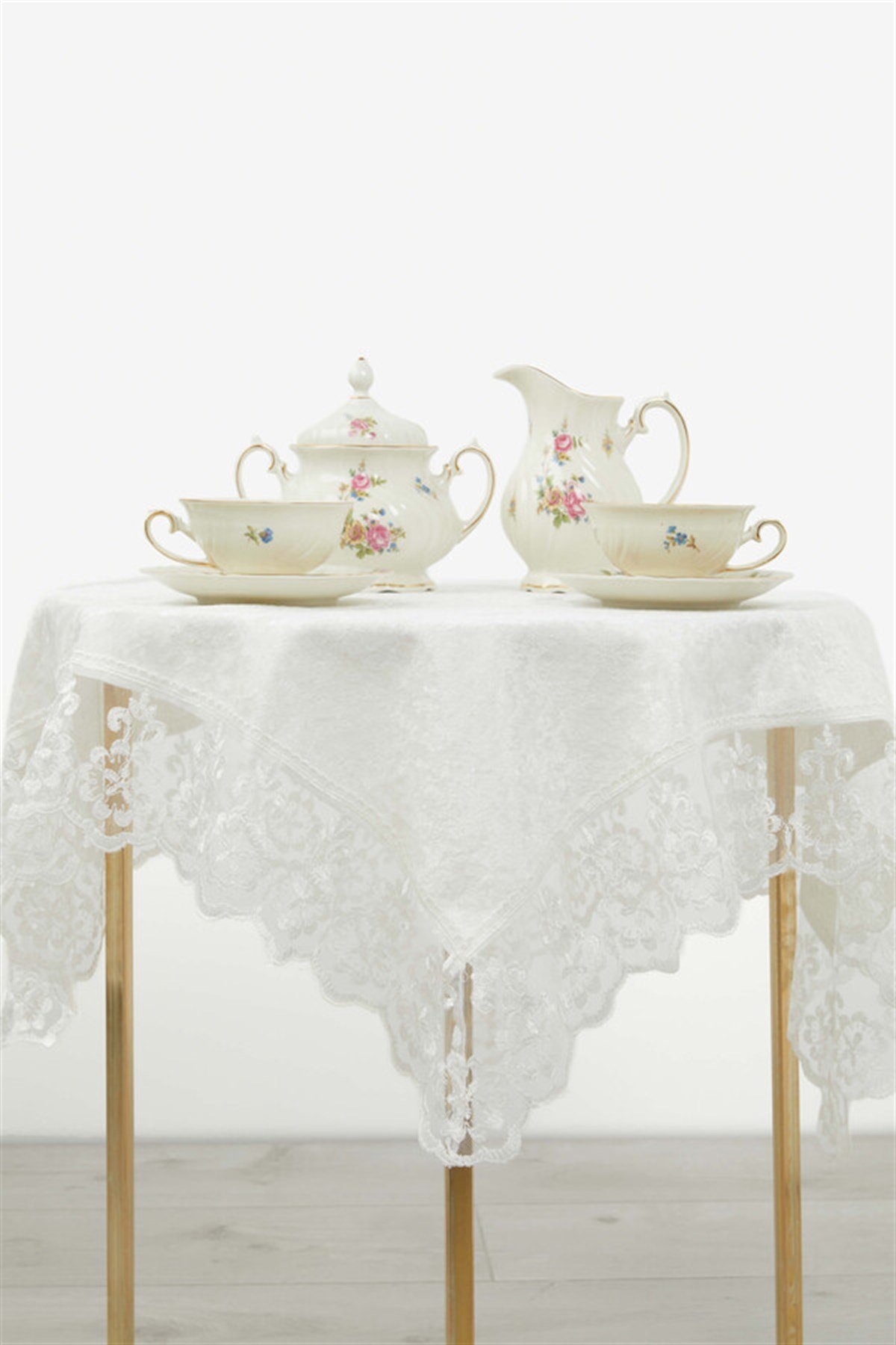 Fatih Güpürlü Kadife Fiskos Örtüsü - Ekru
