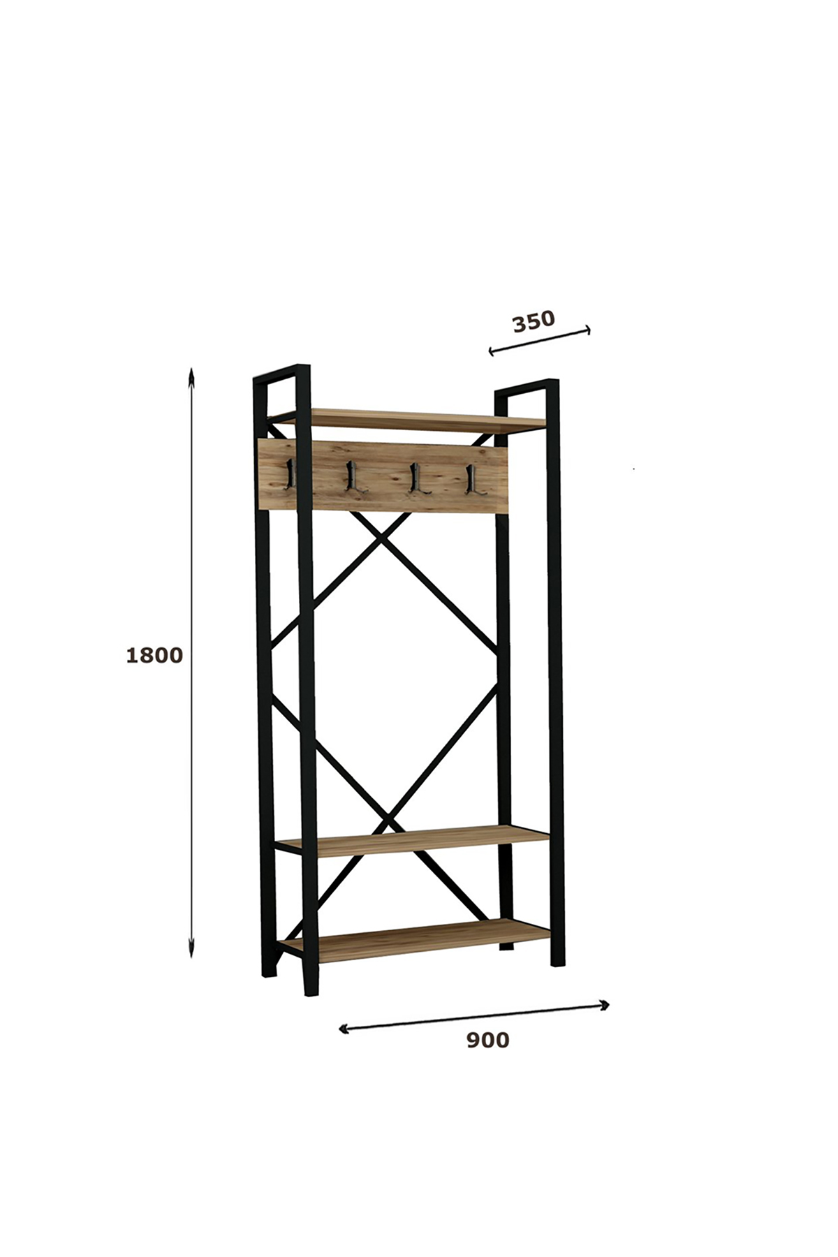 Geniş askılık bölümü, günlük ceket, mont ve çantalarınızı pratik şekilde yerleştirmenize olanak tanırken, alt kısmında yer alan açık raflar ayakkabılarınızı düzenli bir şekilde saklamanızı sağlar. Üst raf ise dekoratif objeler ya da ekstra eşyalar için ideal alan sunar.