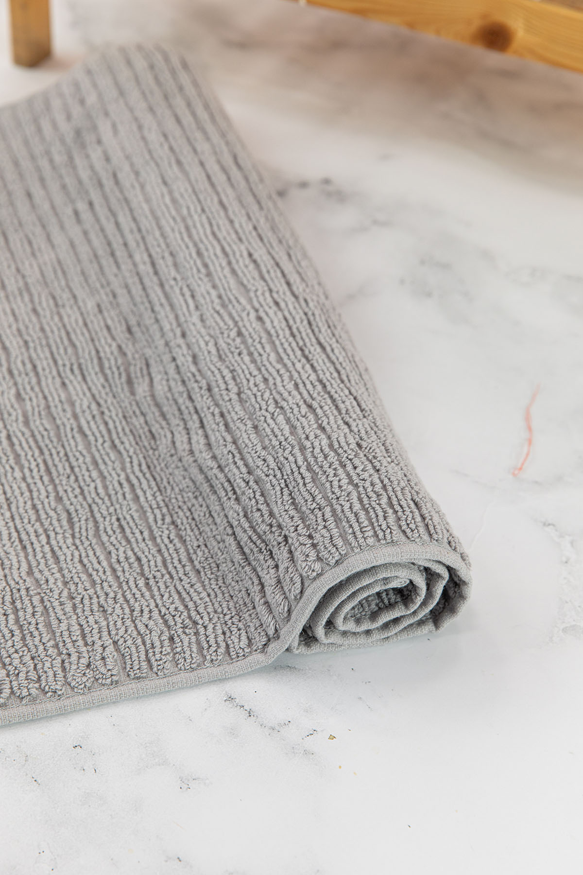 Favora Linear Ayak Havlusu, 50x90 cm ölçüsüyle banyo sonrası konforu ve estetiği bir araya getirir. Gri rengin sade ve modern görünümü, çizgili dokusuyla birleşerek hem fonksiyonel hem de şık bir kullanım sunar.