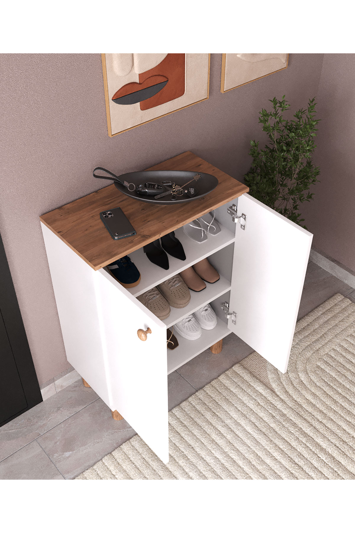 Modern çizgileri ve doğal renk uyumuyla öne çıkan Favora Sun Ayakkabılık, evinizin giriş alanında hem şık hem de düzenli bir görünüm sunar. Atlantik çam ve beyaz renk kombinasyonu, dekorasyonunuza sıcak bir hava katarken; iki kapaklı yapısıyla ayakkabılarınızı kolayca organize etmenize yardımcı olur.