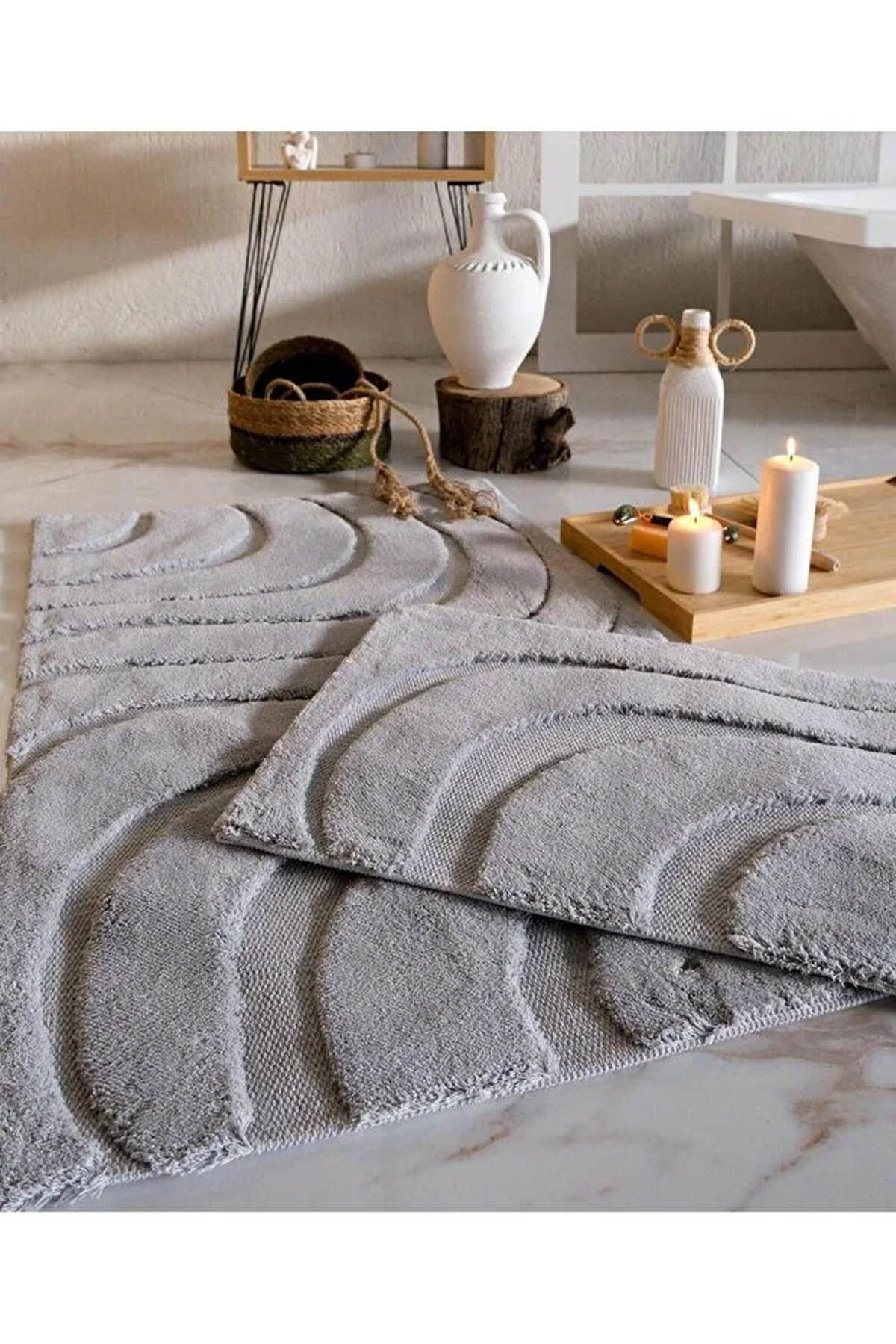 İyi Geceler Vaven %100 Pamuk Viskon 2 Parça Banyo Paspas Seti – Gri, zarif ve modern gri tonuyla banyonuzda hem sade hem konforlu bir atmosfer yaratır. Ürün, 40×60 cm ve 60×100 cm boyutlarında iki parçadan oluşur, böylece hem lavabo önü hem de duş ya da küvet çıkışı için ideal kullanım sunar.