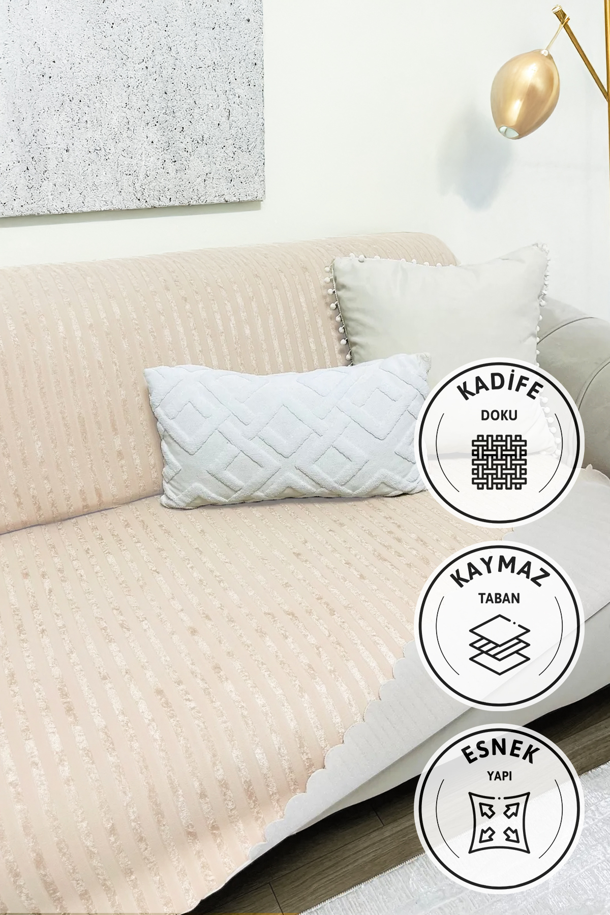 Kaymaz Taban Süngerli Kadife Koltuk 170x210 Bej