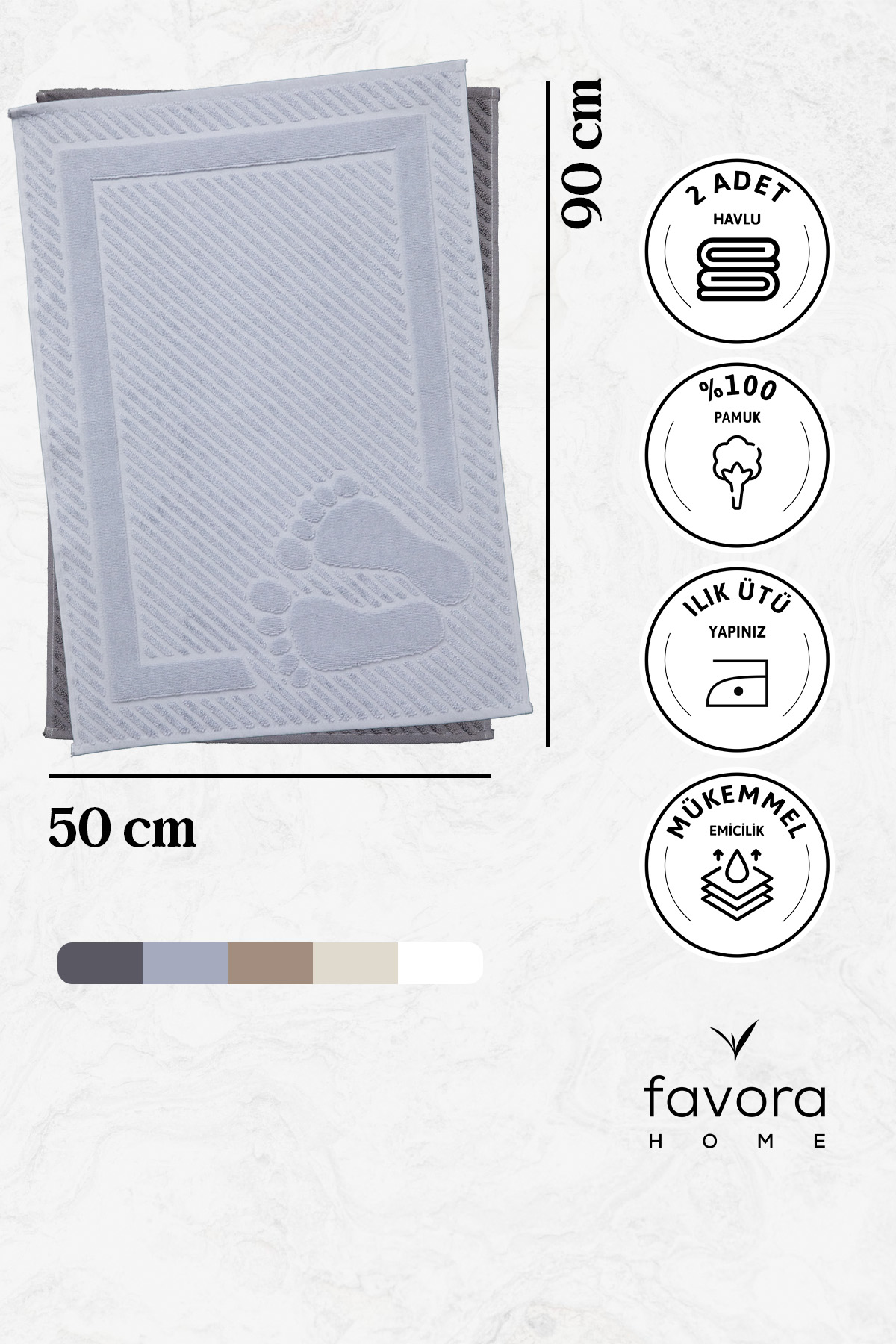 Banyonuzda hem konforu hem de şıklığı bir arada yaşamak ister misiniz? %100 pamuk dokusuyla Favora Leoline 2'li Ayak Havlusu, ultra yumuşak yapısı sayesinde cildinize nazikçe dokunur ve suyu hızla emer. Hassas ciltler için ideal olan bu havlu, tahrişe neden olmadan mükemmel kuruluk sağlar.