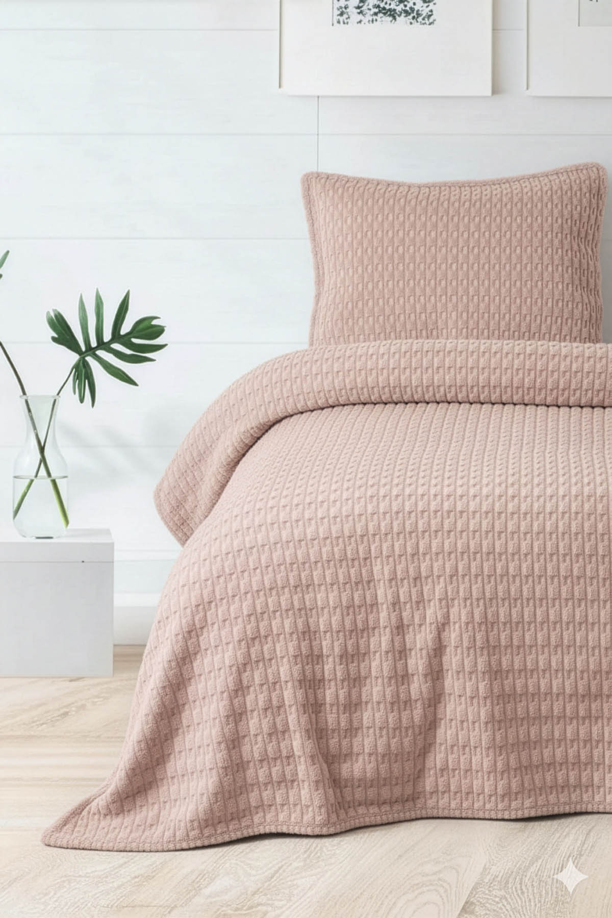 Merinos Modern Line Twist 2 Parça Tek Kişilik Battaniye Seti - Pudra