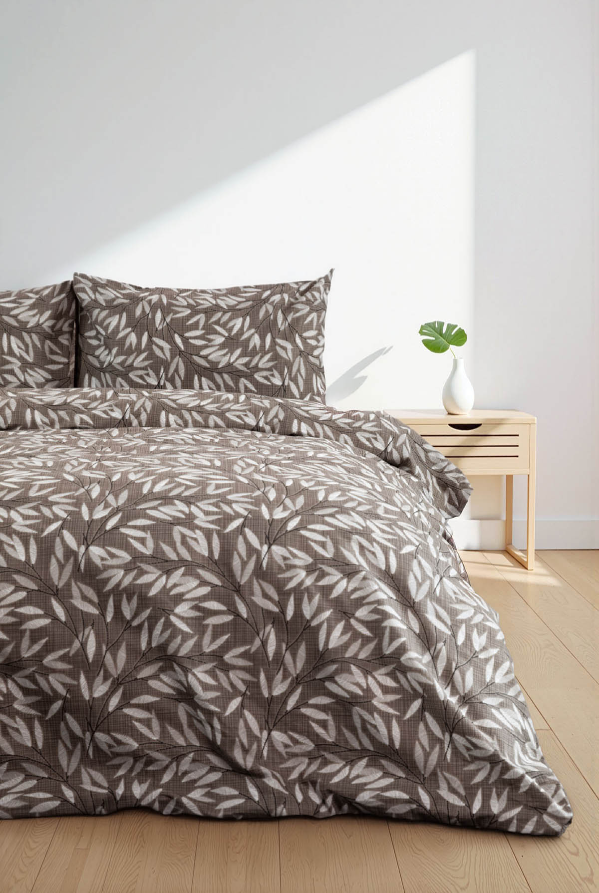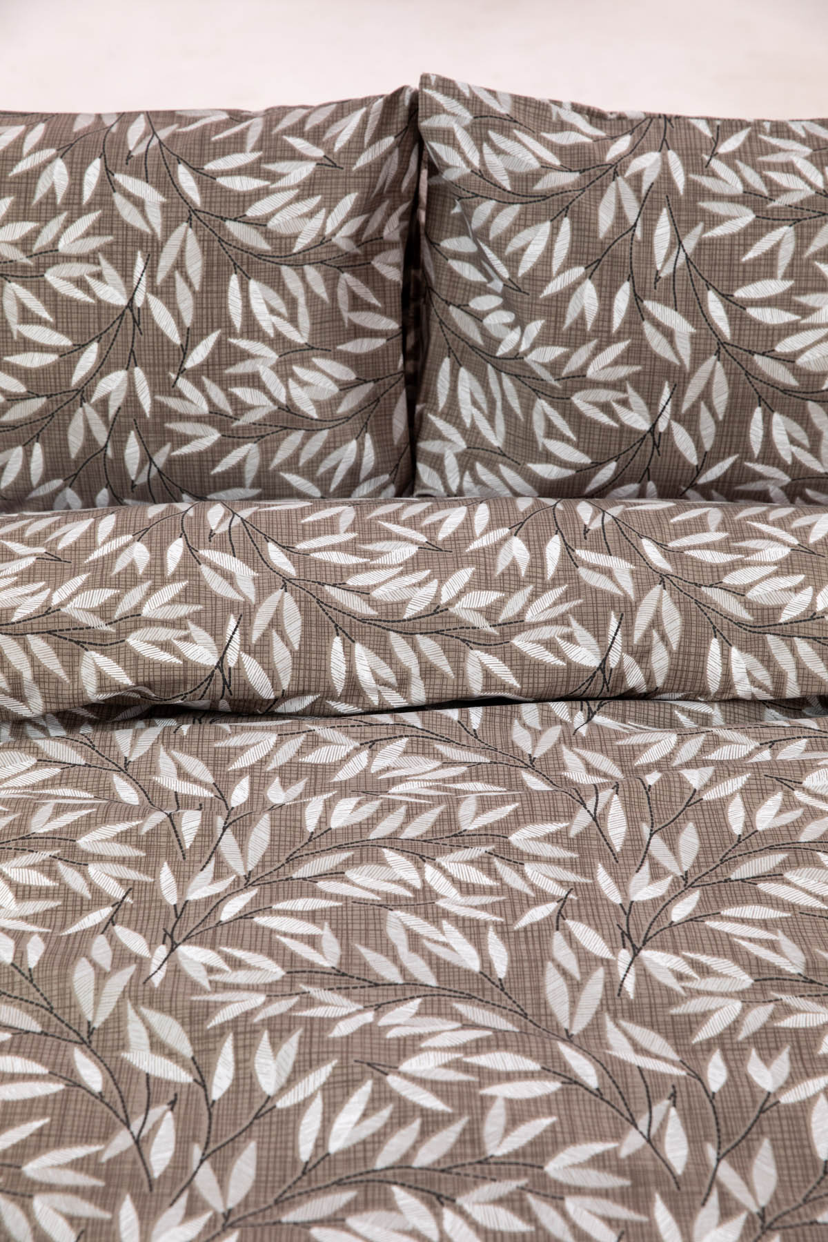 Noven Lastikli Çarşaflı Çift Kişilik Nevresim Takımı - Kahverengi