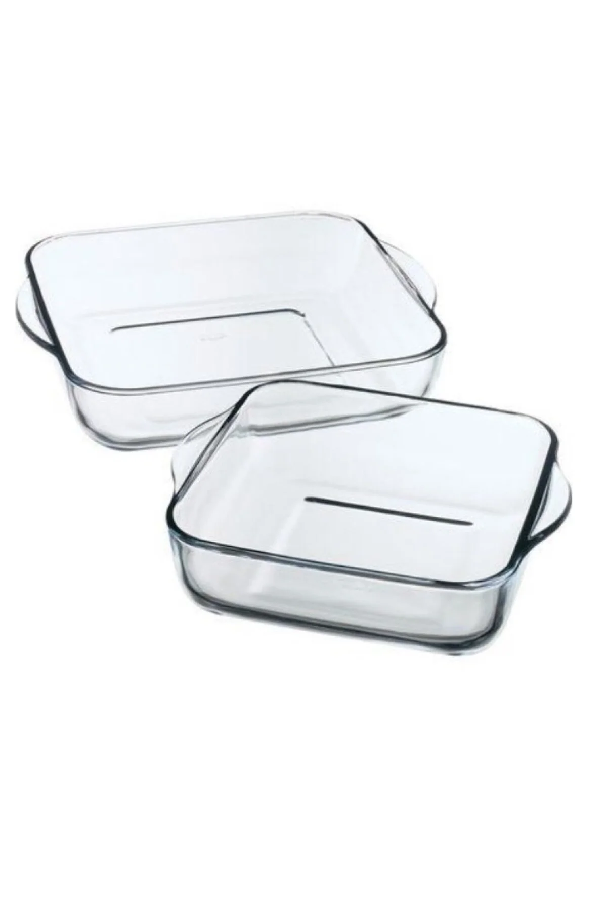 Dayanıklı cam malzeme yüksek ısıya dayanıklıdır ve uzun ömürlü kullanım sunar. Fırın, mikrodalga ve buzdolabı kullanımına uygun olması, yemek hazırlama, saklama ve servis süreçlerinde esnek bir kullanım olanağı sağlar. Zarif ve şeffaf tasarımı, hem mutfakta hem de sofrada estetik bir görünüm sunar. İki farklı boy tepsi seti, farklı porsiyon ihtiyaçlarına göre pratik çözümler sağlar ve kullanım kolaylığı sunar.