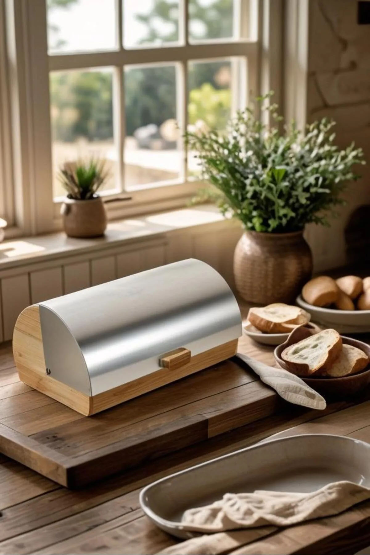 Hava dolaşımını sağlayan özel yapısı sayesinde ekmeklerin nemlenmesini önler ve tazeliğini uzun süre korur. Modern ve sade tasarımı, doğal bambu dokusuyla birleşerek mutfak dekorunuza zarif bir dokunuş kazandırır. Fonksiyonellik ve estetiği bir arada arayanlar için mükemmel bir tercih.