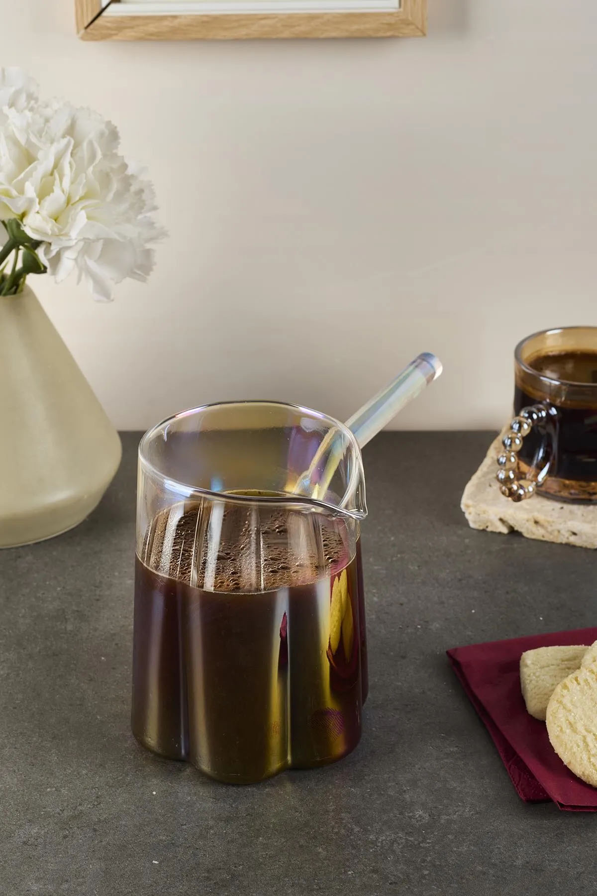 Perotti Felicita Düz Çizgi cam cezve, zarif çizgileri ve modern tasarımıyla kahve sunumlarınıza estetik bir dokunuş katıyor. Isıya dayanıklı borosilikat camdan üretilen bu cezve, ani ısı değişimlerine karşı dayanıklılığıyla öne çıkar. Şeffaf gövdesi sayesinde kahvenizin pişme sürecini rahatlıkla takip edebilir, ideal kıvamı yakalayabilirsiniz.