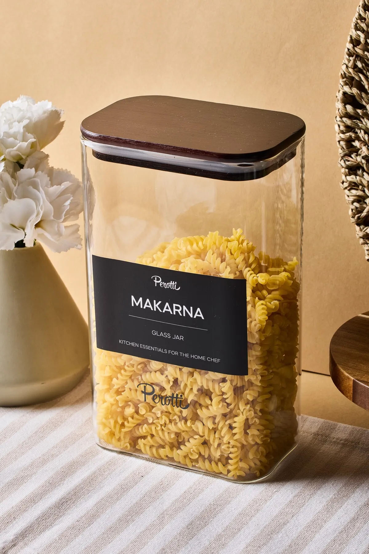 Dayanıklı cam malzemesi ve sızdırmaz kapağı, ürünlerin tazeliğini uzun süre korur. Modern ve sade tasarımıyla mutfak dekorunuza estetik bir dokunuş katan bu kavanoz, hem ev kullanımı hem de hediye amaçlı tercih edilebilecek fonksiyonel ve şık bir üründür.