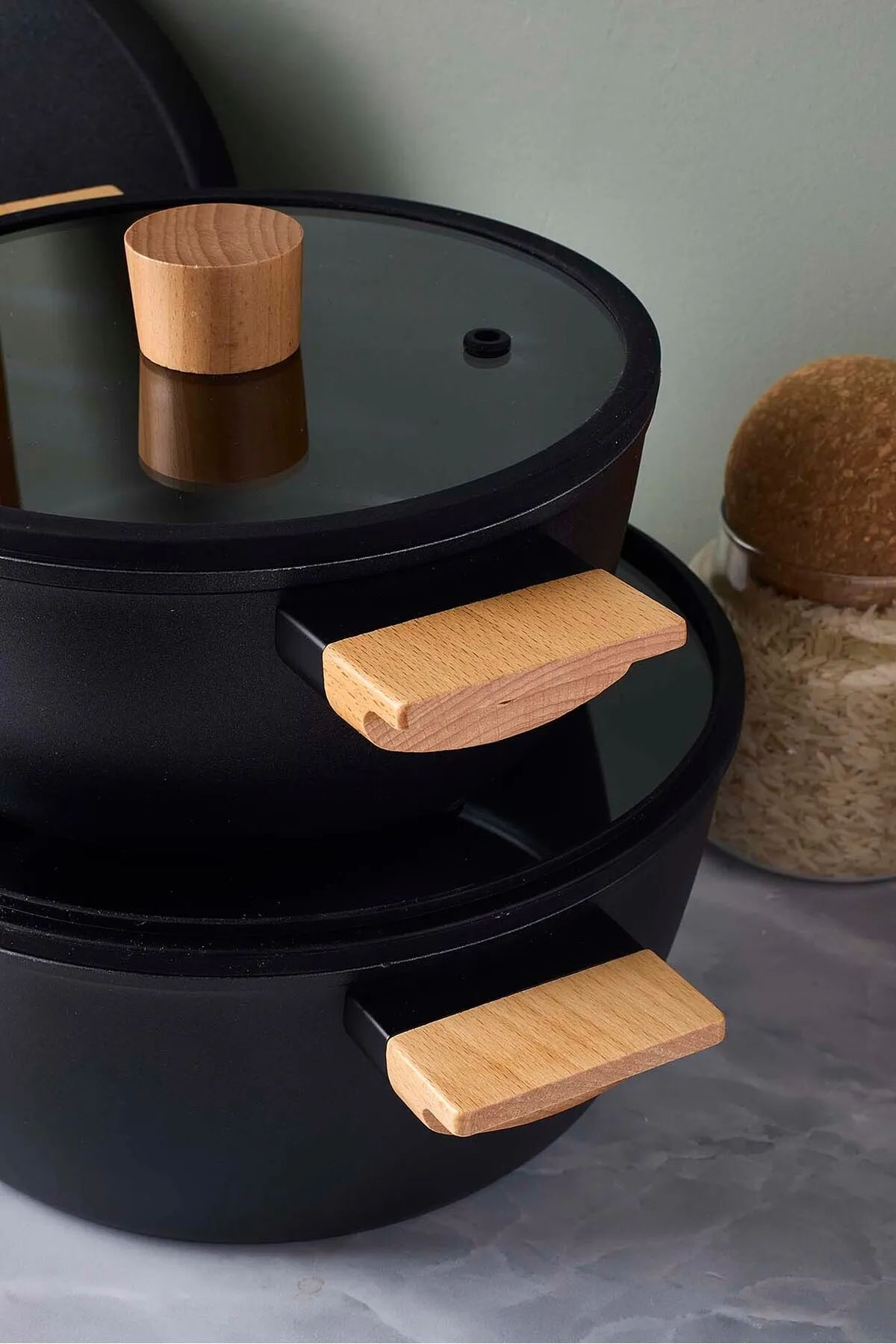 1 adet 20x8.5 cm ahşap saplı kapaklı derin tencere
